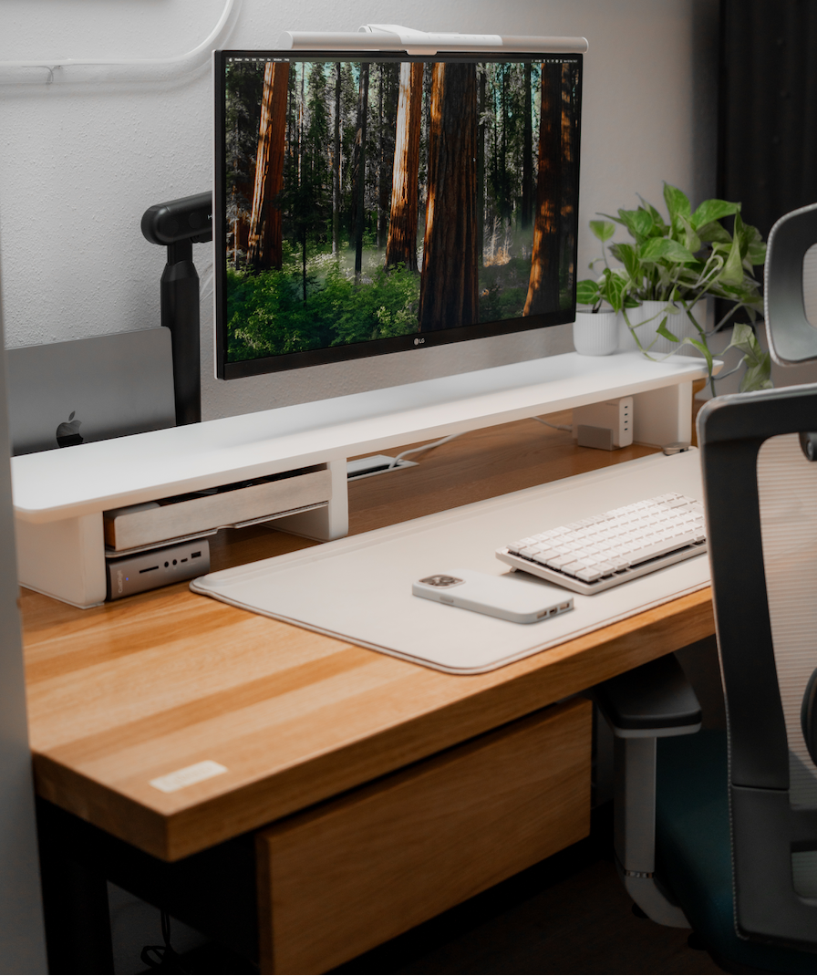 The OAKO Starter Bundle gives you everything you need to create a clean, functional setup built around a handcrafted solid wood standing desk.